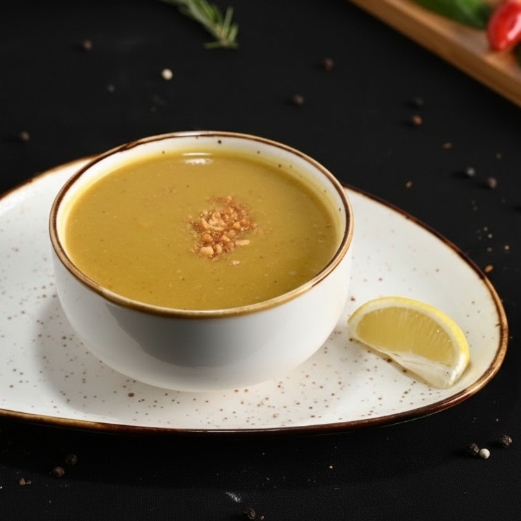 شوربة عدس مصرية تقليدية محضّرة بعدس أصفر، خضار طازجة وتوابل شرقية، دافئة وغنية بالطعم والقيمة الغذائية.