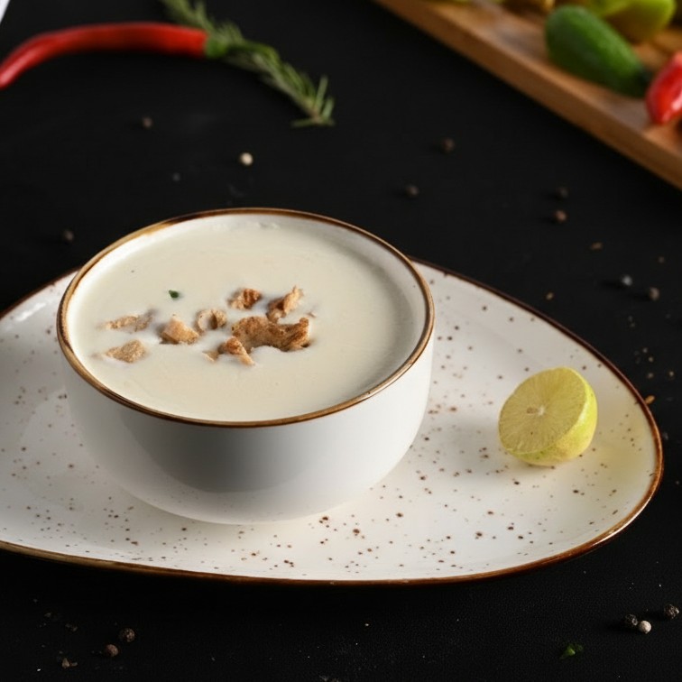 شوربة كريمة الفراخ بقوام كريمي غني، محضّرة بصدور فراخ طازجة ولمسة من الكريمة الناعمة.