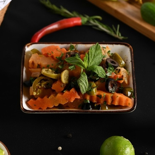 تشكيلة من المخللات الشرقية تعطي نكهة قوية ومنعشة مع الوجبة.