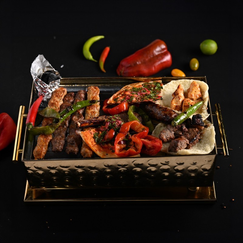 تشكيلة مشاوي مصرية مميزة تجمع بين أوصال بتلو، كباب لحم، كباب دجاج، وشيش طاووق، مشوية على الفحم وتُقدَّم مع سلطة، طحينة، عيش و50 جرام بطاطس.